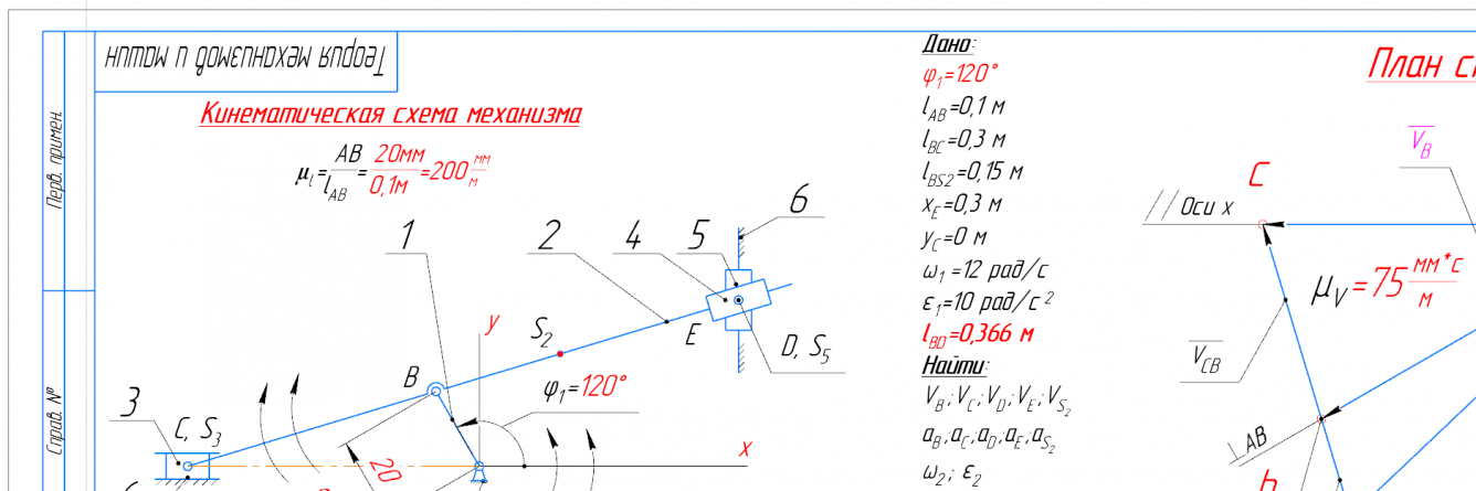 👉ДЗ №1: Структурный + Кинематический анализ рычажного механизма (Вариант 3Б)