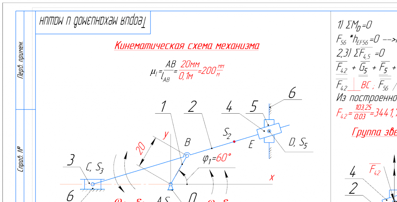 👉ДЗ №2: Силовой анализ рычажного механизма (Вариант 3А)