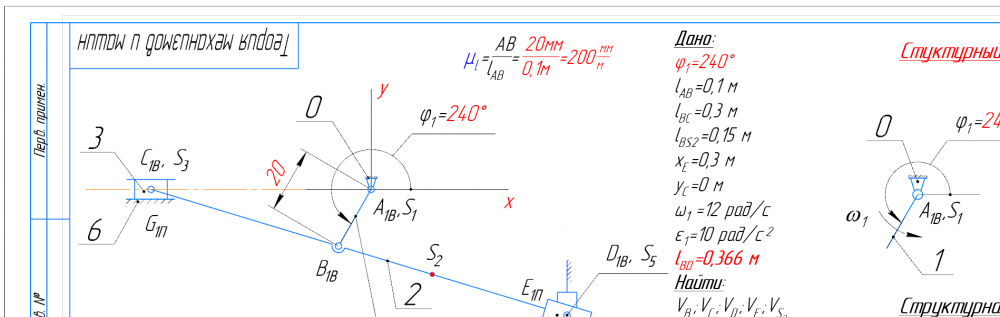 👉ДЗ №1: Структурный + Кинематический анализ рычажного механизма (Вариант 3В)