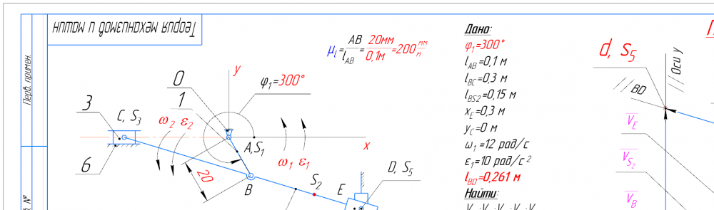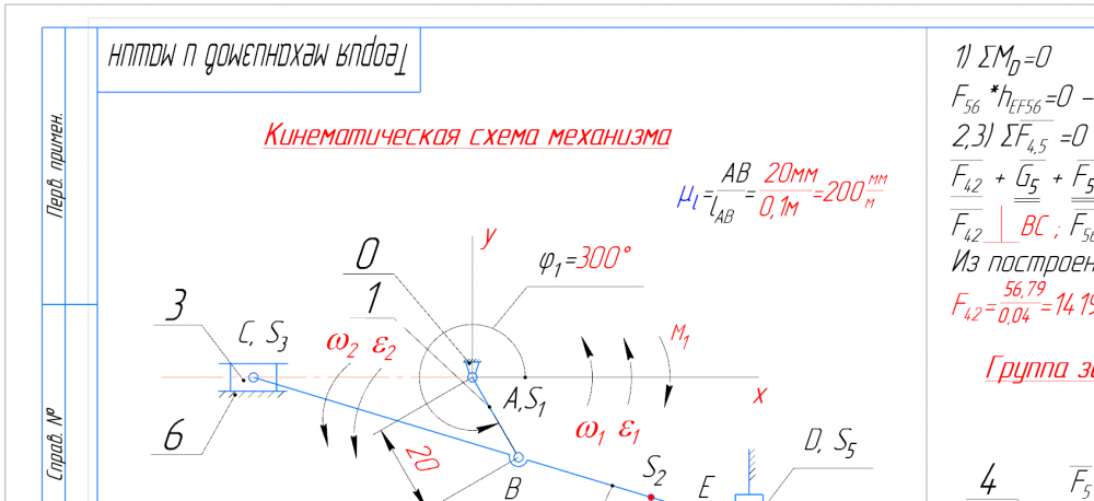 Главная » Учебные материалы » Теория механизмов и машин (ТММ) » Домашние задания » МГТУ им. Н.Э.Баумана » 4 семестр » Номер 1 » Вариант 3 » Структурный + Кинематический анализ и Силовой анализ рычажного механизма (КОМПАС 3D - Угол фи=300 град)