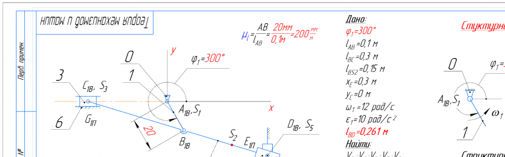 👉ДЗ №1: Структурный + Кинематический анализ рычажного механизма (Вариант 3Г)