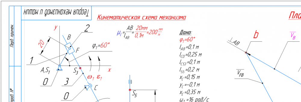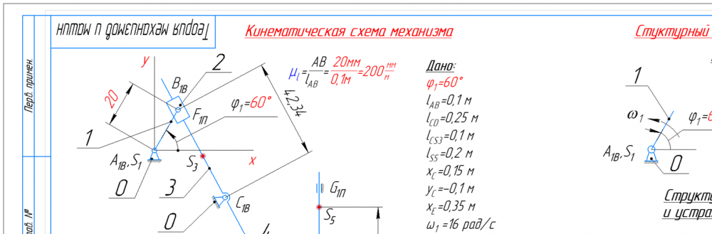 👉ДЗ №1: Структурный + Кинематический анализ рычажного механизма (Вариант 12А)