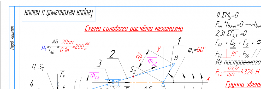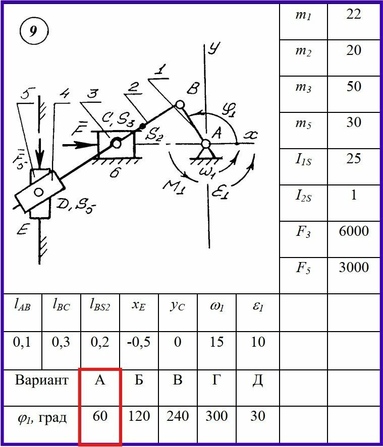 👉ДЗ №2: Силовой анализ рычажного механизма (Вариант 9А)