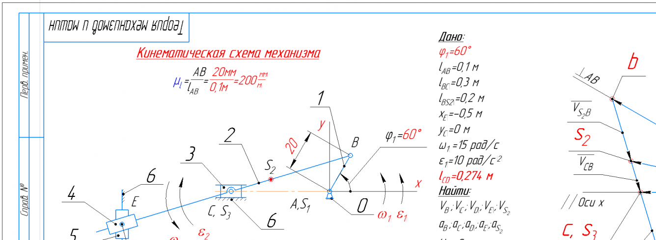 👉ДЗ №1: Структурный + Кинематический анализ рычажного механизма (Вариант 9А)