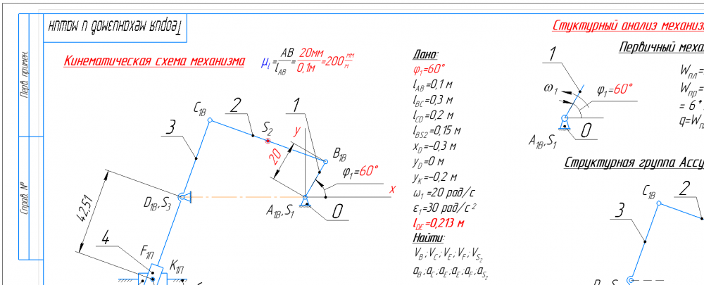 👉ДЗ №1 + №2: Структурный + Кинематический анализ и Силовой анализ рычажного механизма (Вариант 17А)