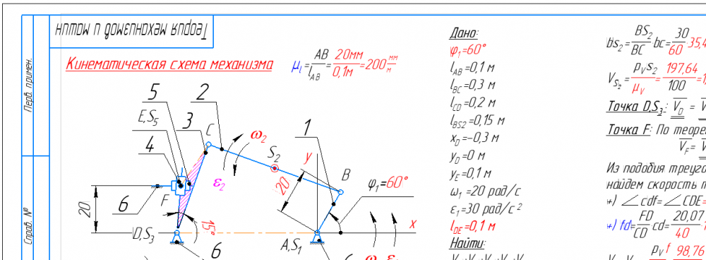 👉ДЗ №1: Структурный + Кинематический анализ рычажного механизма (Вариант 26А)