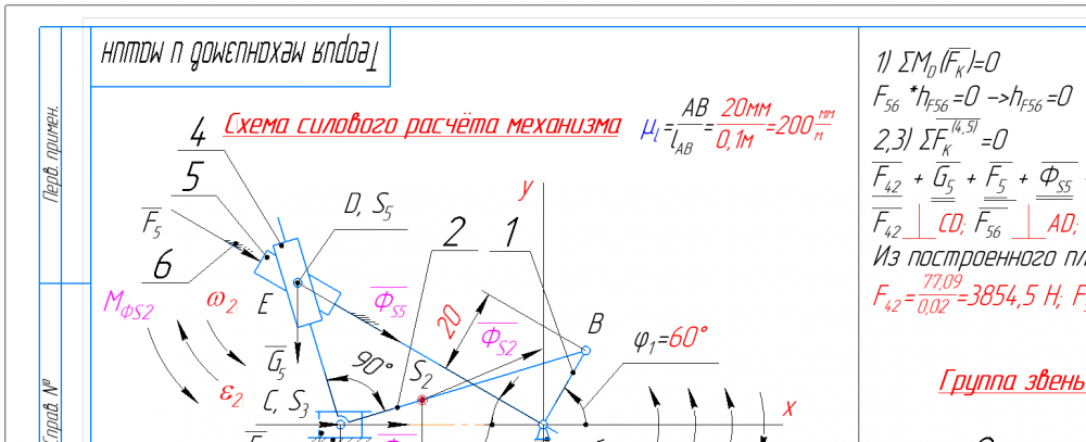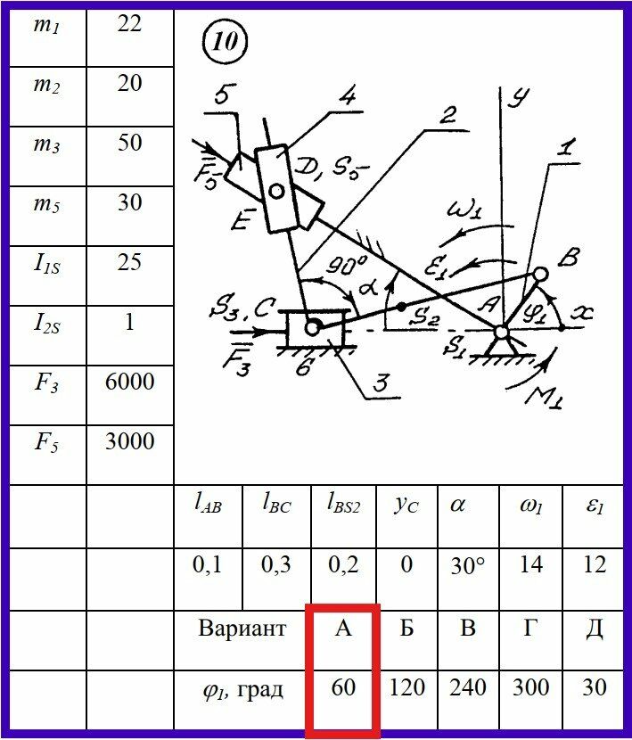 👉ДЗ №1 + №2: Структурный + Кинематический анализ и Силовой анализ рычажного механизма (Вариант 10А)
