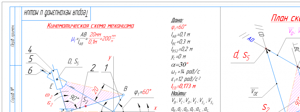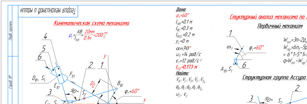 👉ДЗ №1: Структурный + Кинематический анализ рычажного механизма (Вариант 10А)
