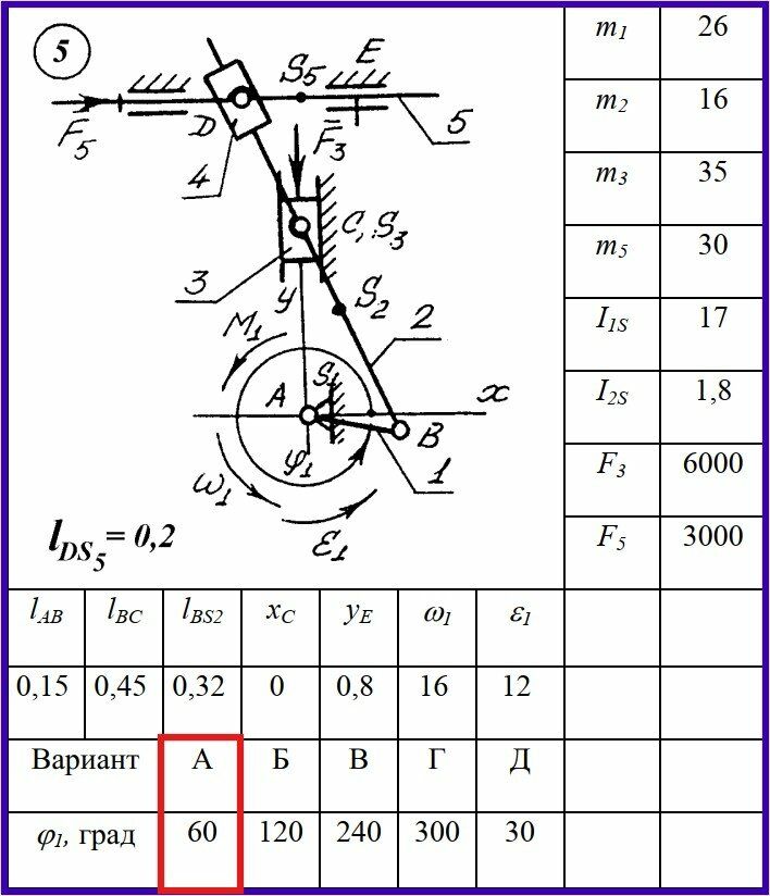 👉ДЗ №1 + №2: Структурный + Кинематический анализ и Силовой анализ рычажного механизма (Вариант 5А)
