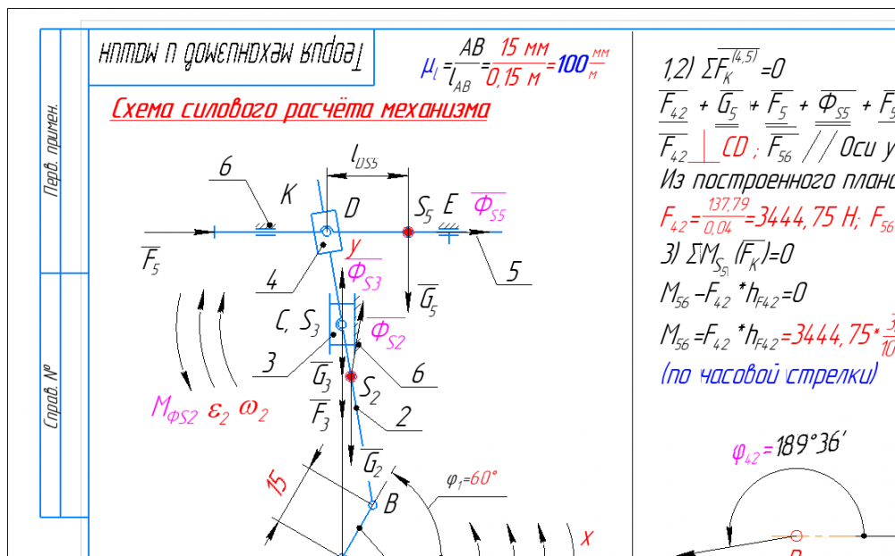 Главная » Учебные материалы » Теория механизмов и машин (ТММ) » Домашние задания » МГТУ им. Н.Э.Баумана » 4 семестр » Номер 2 » Вариант 5 » Силовой анализ рычажного механизма (КОМПАС 3D - Угол фи=60 град)