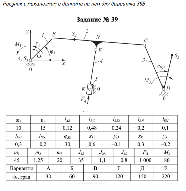 ДЗ 39: Структурный, кинематический и силовой анализ вариант Б