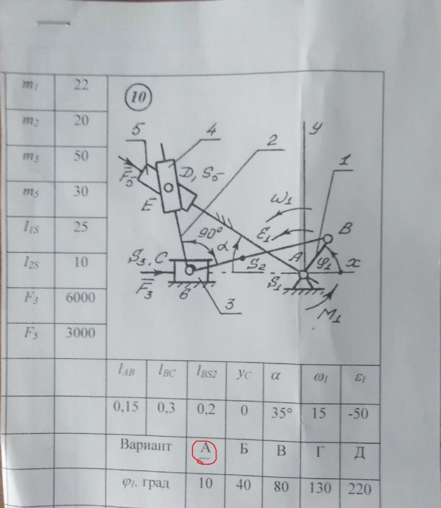 ДЗ 1, 2: ДЗ1,2: Структурный, кинематический и силовой анализ рычажного механизма вариант 10, 10А, А