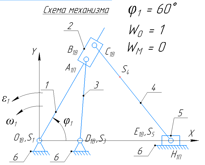 ДЗ 2: ДЗ 2: Силовой анализ рычажного механизма (КОМПАС 3D - Угол фи=60 град) вариант 34