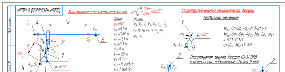 👉ДЗ №1 + №2: Структурный + Кинематический анализ и Силовой анализ рычажного механизма (Вариант 11А)