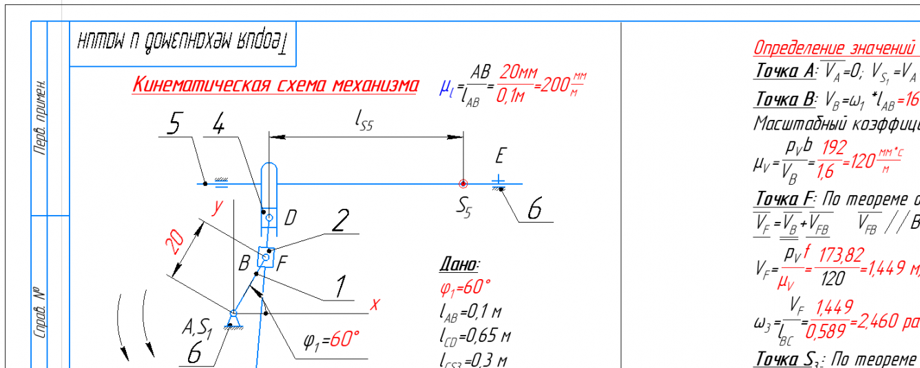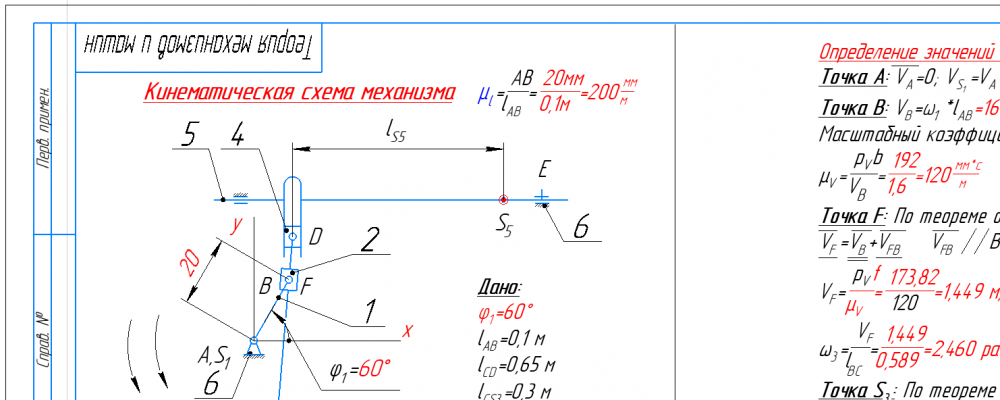 Главная » Учебные материалы » Теория механизмов и машин (ТММ) » Домашние задания » МГТУ им. Н.Э.Баумана » 4 семестр » Номер 1 » Вариант 11 » Структурный + Кинематический анализ рычажного механизма (КОМПАС 3D - Угол фи=60 град)