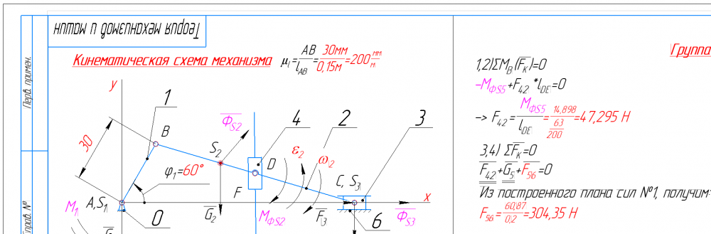 Главная » Учебные материалы » Теория механизмов и машин (ТММ) » Домашние задания » МГТУ им. Н.Э.Баумана » 4 семестр » Номер 2 » Вариант 2 » Силовой анализ рычажного механизма (КОМПАС 3D - Угол фи=60 град)