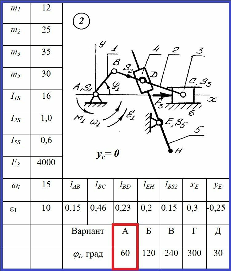 👉ДЗ №2: Силовой анализ рычажного механизма (Вариант 2А)