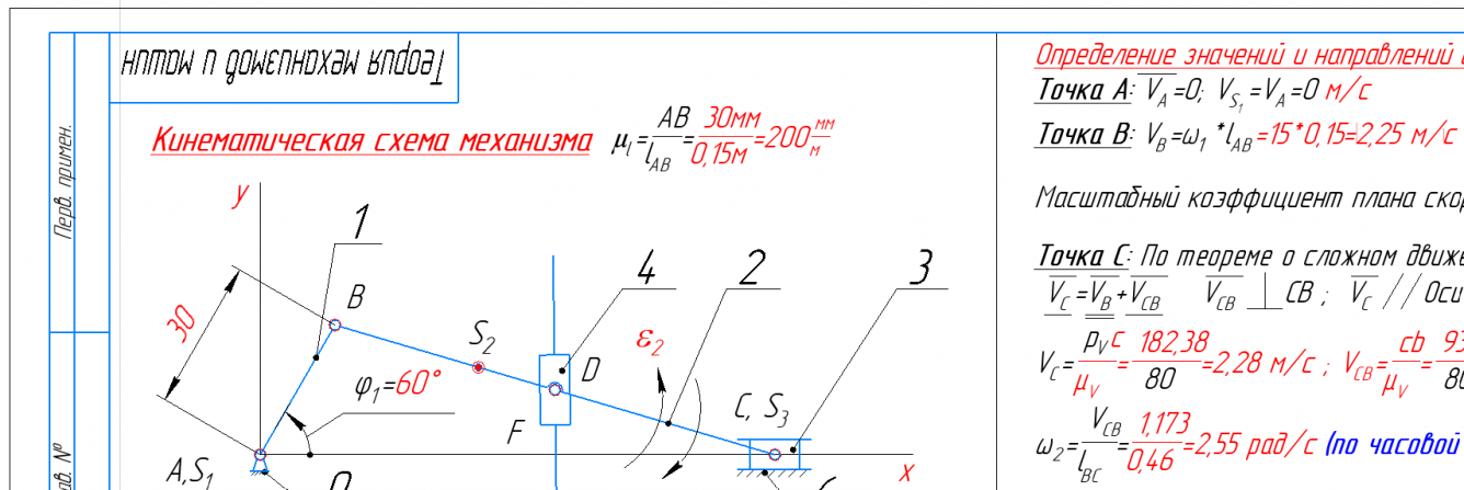Главная » Учебные материалы » Теория механизмов и машин (ТММ) » Домашние задания » МГТУ им. Н.Э.Баумана » 4 семестр » Номер 1 » Вариант 2 » Структурный + Кинематический анализ и Силовой анализ рычажного механизма (КОМПАС 3D - Угол фи=60 град)