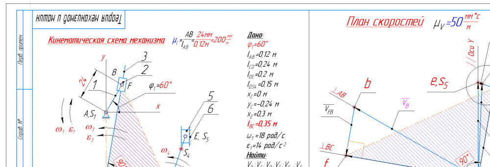 👉ДЗ №1 + №2: Структурный + Кинематический анализ и Силовой анализ рычажного механизма (Вариант 13А)