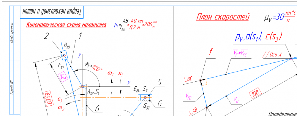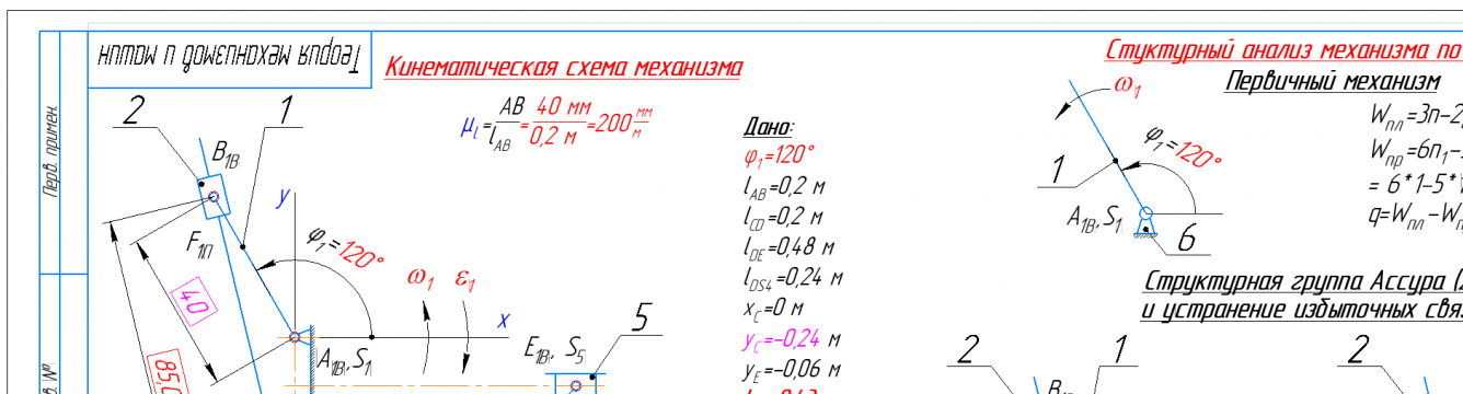 👉ДЗ №1 + №2: Структурный + Кинематический анализ и Силовой анализ рычажного механизма (Вариант 14Б ε=140 рад/с2)