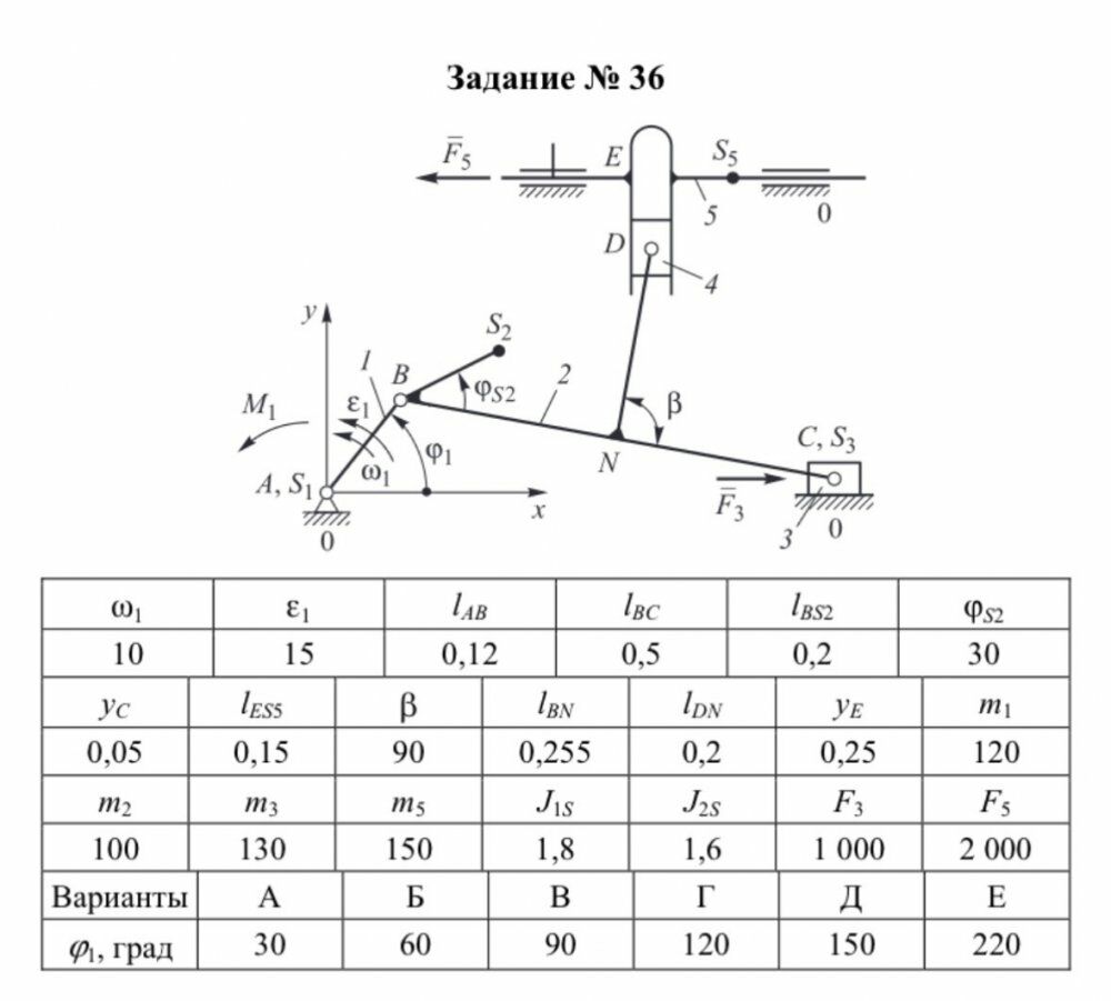 ДЗ 1: Структурный+кинематический анализ механизма вариант 36