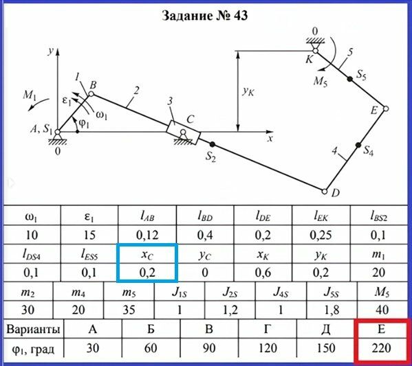👉ДЗ №2: Силовой анализ рычажного механизма (Вариант 43Е-Фи=220)