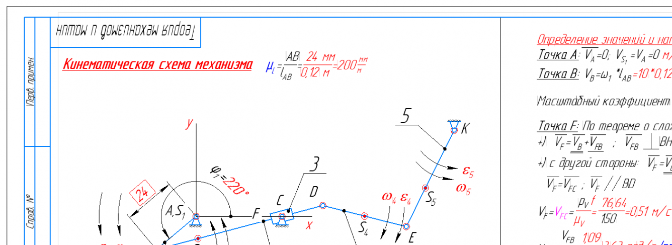👉ДЗ №1: Структурный + Кинематический анализ рычажного механизма (Вариант 43Е-Фи=220)