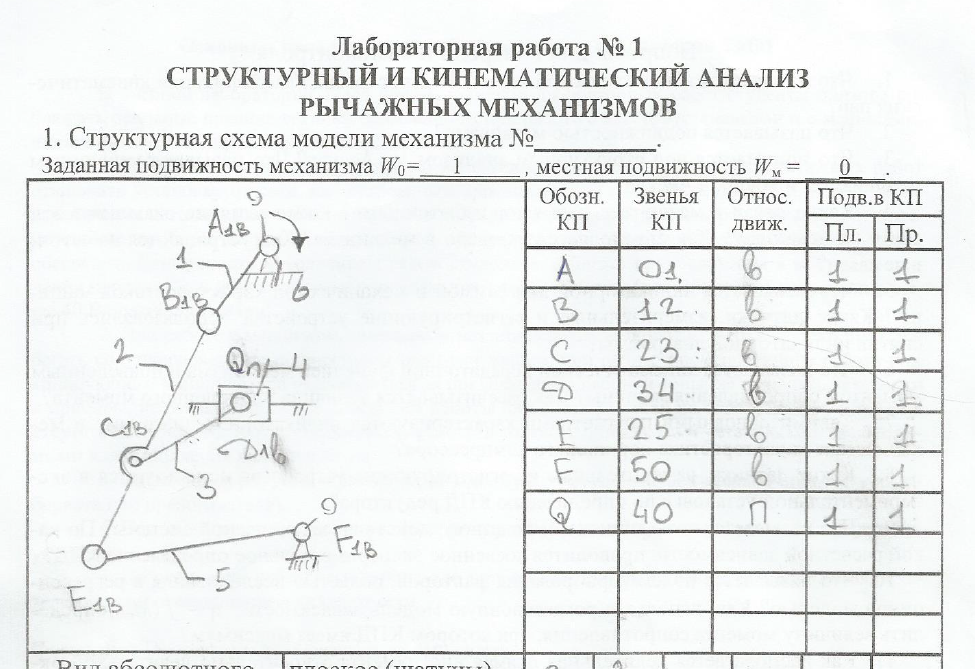 Лабораторная работа 1: Структурный и кинематический анализ рычажных механизмов