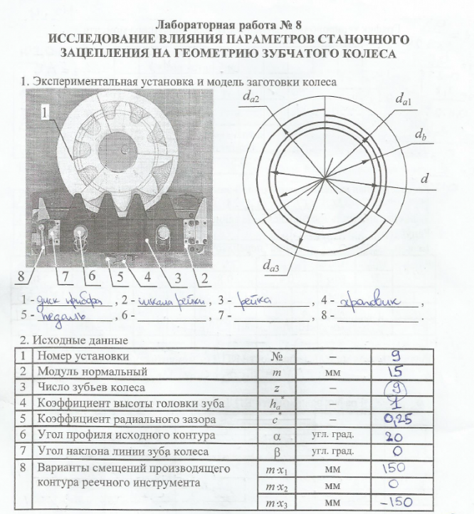 Главная » Учебные материалы » Теория механизмов и машин (ТММ) » Лабораторные работы » МГТУ им. Н.Э.Баумана » 4 семестр » Номер 8 » Исследование влияния параметров станочного зацепления на геометрию зубчатого колеса