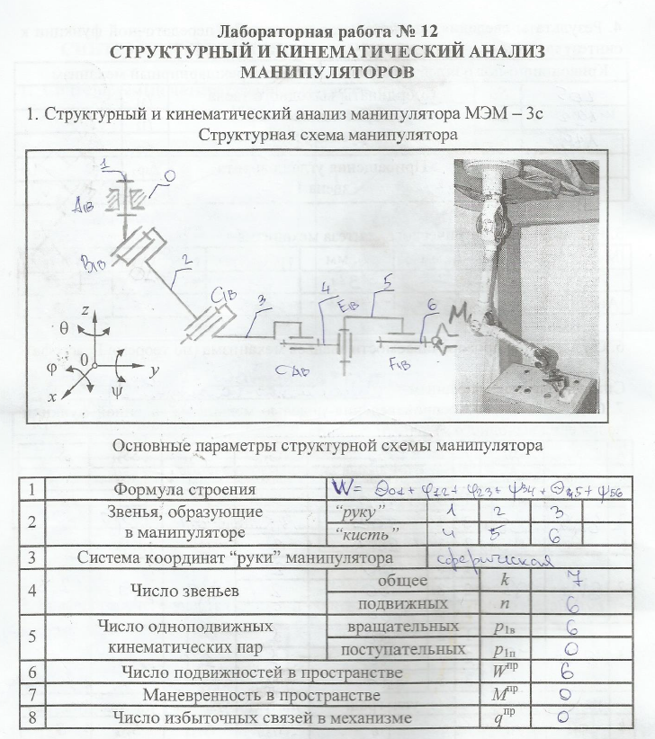 Для студентов МГТУ им. Н.Э.Баумана по предмету Теория механизмов и машин (ТММ)Структурный и кинематический анализ манипуляторовСтруктурный и кинематический анализ манипуляторов