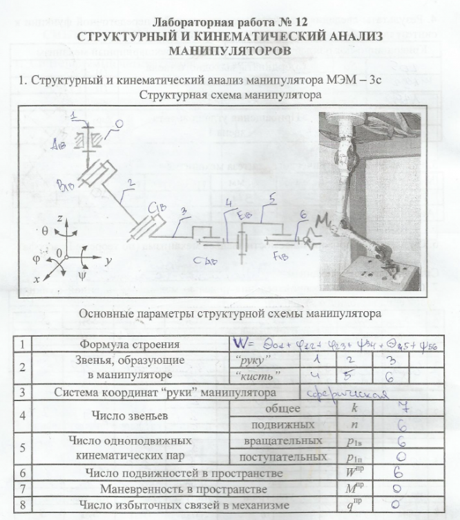 Лабораторная работа 12: Структурный и кинематический анализ манипуляторов