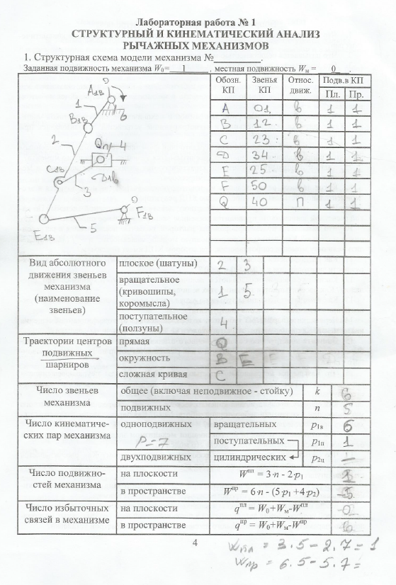 - ЛР №1 - Структурный и кинематический анализ рычажных механизмов