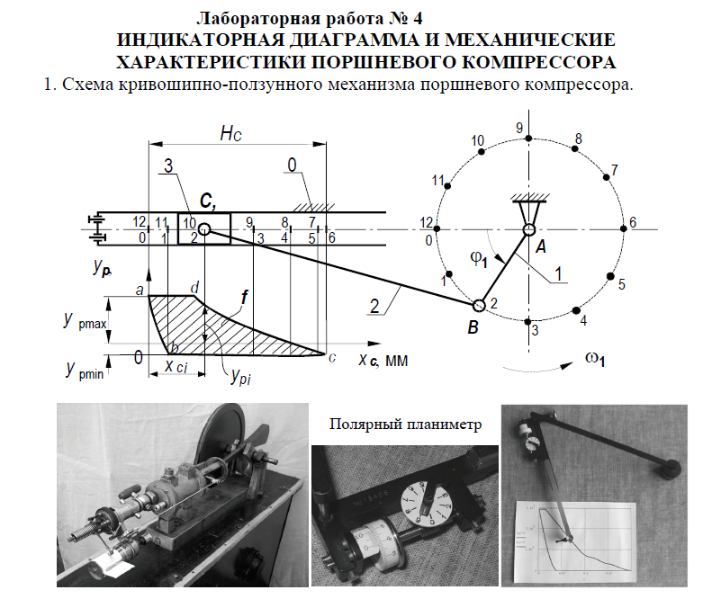 Для студентов МГТУ им. Н.Э.Баумана по предмету Теория механизмов и машин (ТММ)Индикаторная диаграмма и механические характеристики поршневого компрессораИндикаторная диаграмма и механические характеристики поршневого компрессора