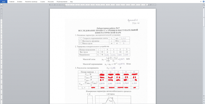 Лабораторная работа 17: Исследование процесса трения в поступательной кинематической паре вариант 10