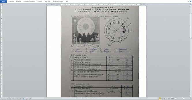 Лабораторная работа 8: Исследование влияния параметров станочного зацепления на геометрию зубчатого колеса вариант 8
