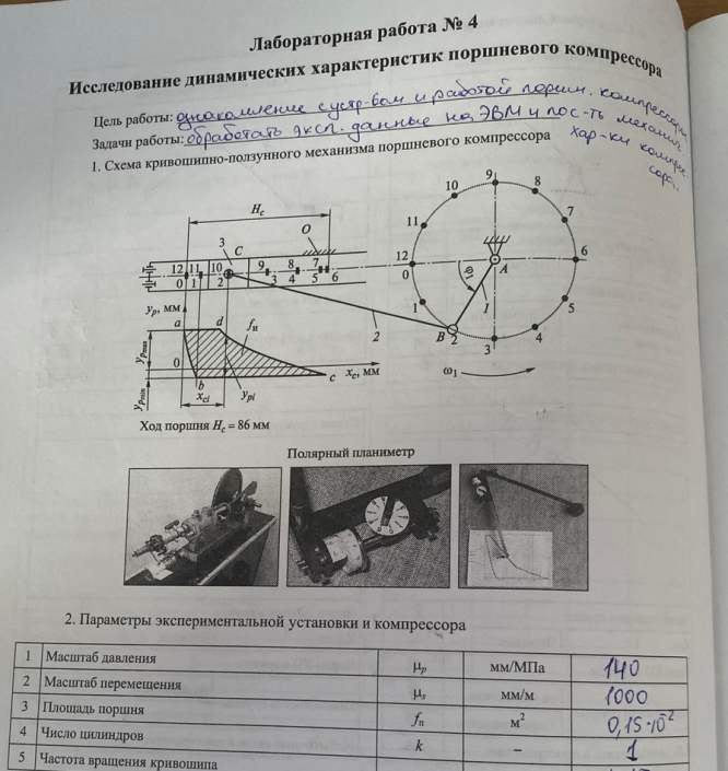 Лабораторная работа 4: Индикаторная диаграмма и механические характеристики поршневого компрессора