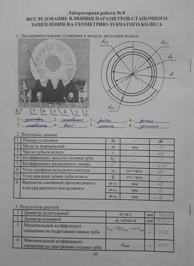 Лабораторная работа 8: Исследование влияния параметров станочного зацепления на геометрию зубчатого колеса