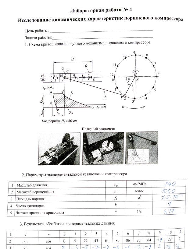 Лаб №4 - Индикаторная диаграмма и механические характеристики поршневого компрессора