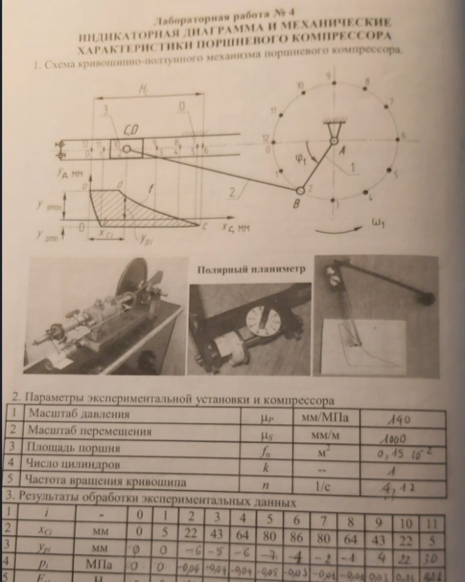 Лаб №4 - Индикаторная диаграмма и механические характеристики поршневого компрессора