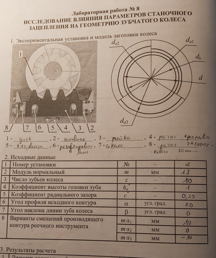 Лабораторная работа 8: Исследование влияния параметров станочного зацепления на геометрию зубчатого колеса