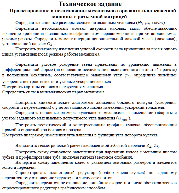 Проектирование и исследование механизмов горизонтально-ковочной машины с разъемной матрицей (вариант №9Г)