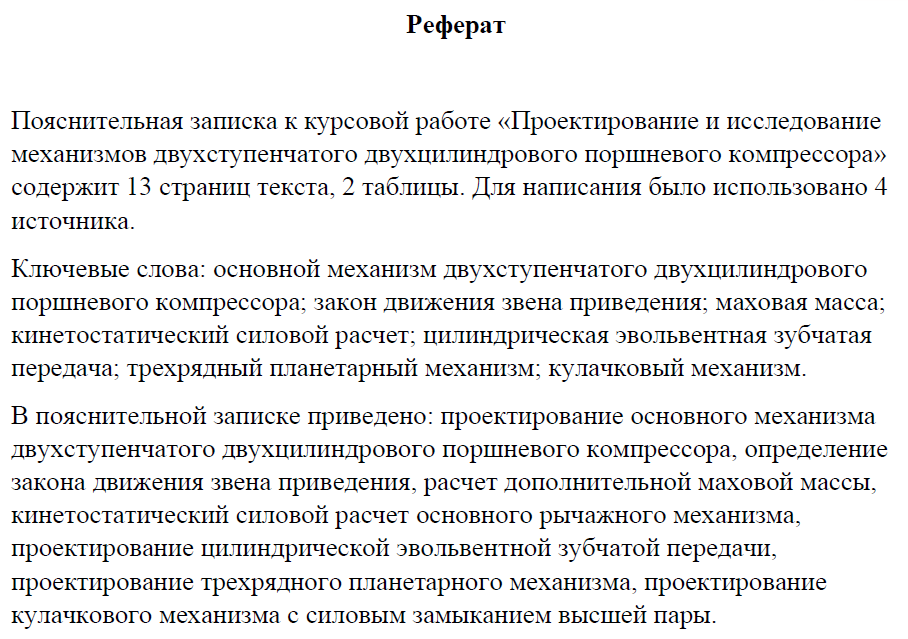 Главная » Учебные материалы » Теория механизмов и машин (ТММ) » Остальные учебные работы » МГТУ им. Н.Э.Баумана » 5 семестр » Номер 62 » Вариант В » Проектирование и исследование механизмов двухступенчатого двухцилиндрового поршневого компрессора (вариант №62В)