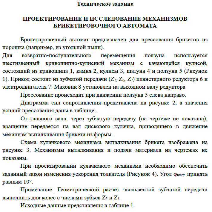 Главная » Учебные материалы » Теория механизмов и машин (ТММ) » Остальные учебные работы » МГТУ им. Н.Э.Баумана » 5 семестр » Номер 30 » Вариант А » Проектирование и исследование механизмов брикетировочного автомата