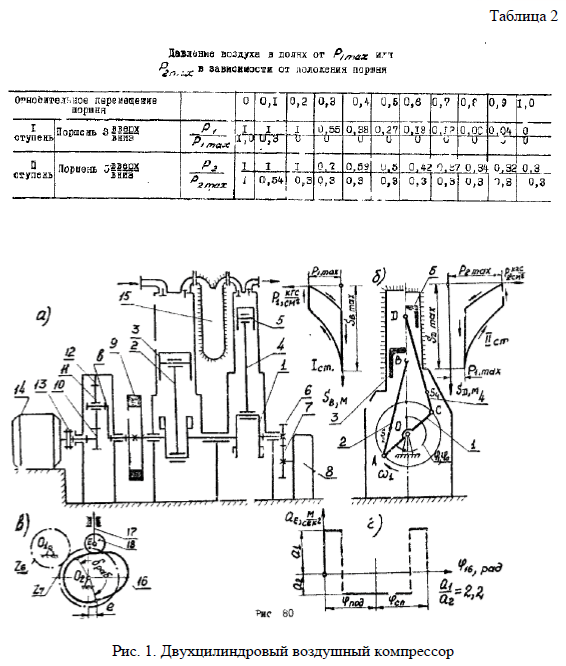 Проект-е и иссл-е механизмов двухступенчатого двухцилиндрового воздушного компрессора (вариант №80А)