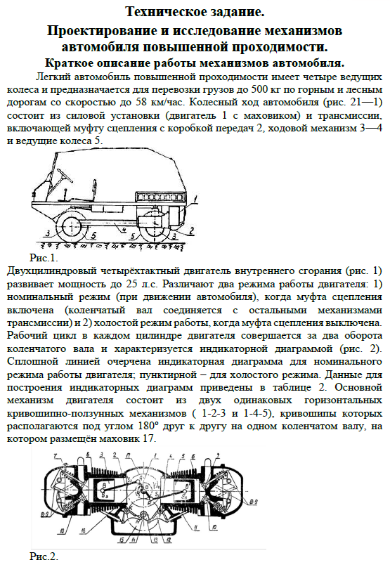 Для студентов МГТУ им. Н.Э.Баумана по предмету Теория механизмов и машин (ТММ)Проектирование и исследование механизмов автомобиля повышенной проводимости (вариант №21Б)Проектирование и исследование механизмов автомобиля повышенной проводимости (вариант №21Б)