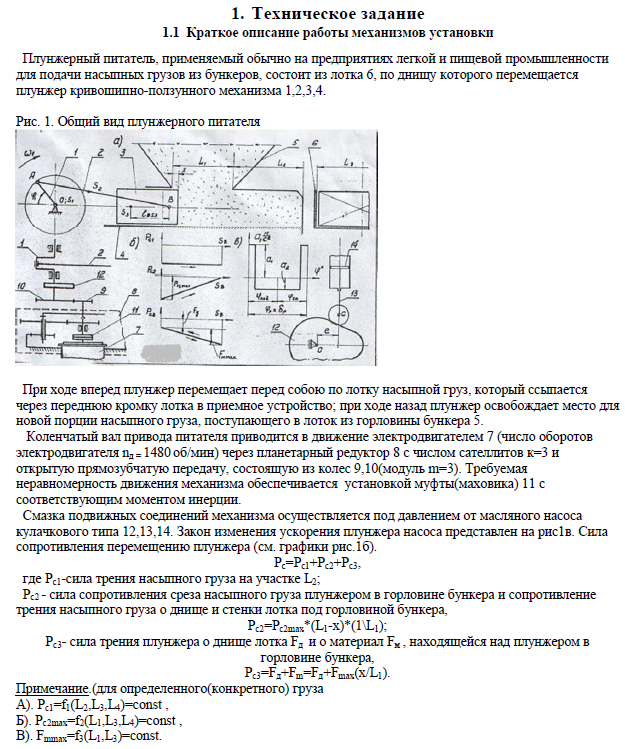 Для студентов МГТУ им. Н.Э.Баумана по предмету Теория механизмов и машин (ТММ)Проектирование и исследование механизмов плунжерного питателяПроектирование и исследование механизмов плунжерного питателя