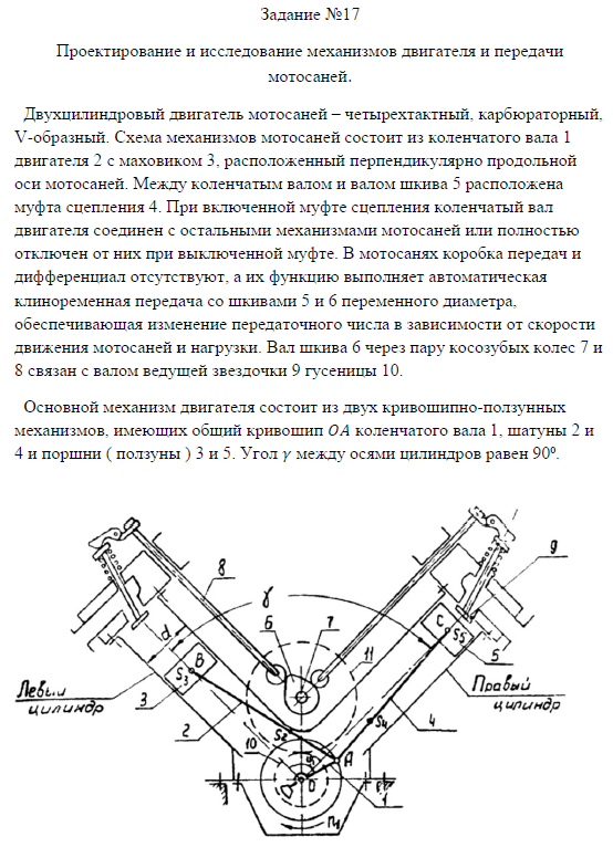 Проектирование и исследование механизмов двигателя и передачи мотосаней (вариант №17Б)