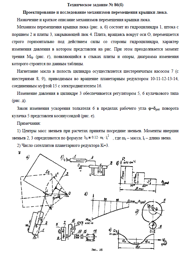 Проектирование и исследование механизмов перемещения крышки люка (вариант №86Б)