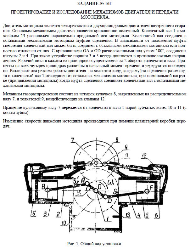 Другое 16: Проектирование и исследование механизмов двигателя и передачи мотоцикла (вариант №16Г) вариант Г