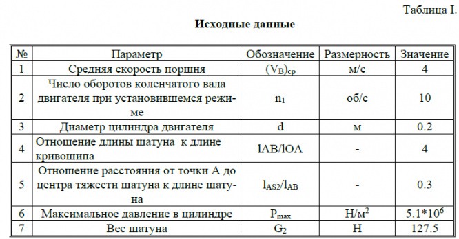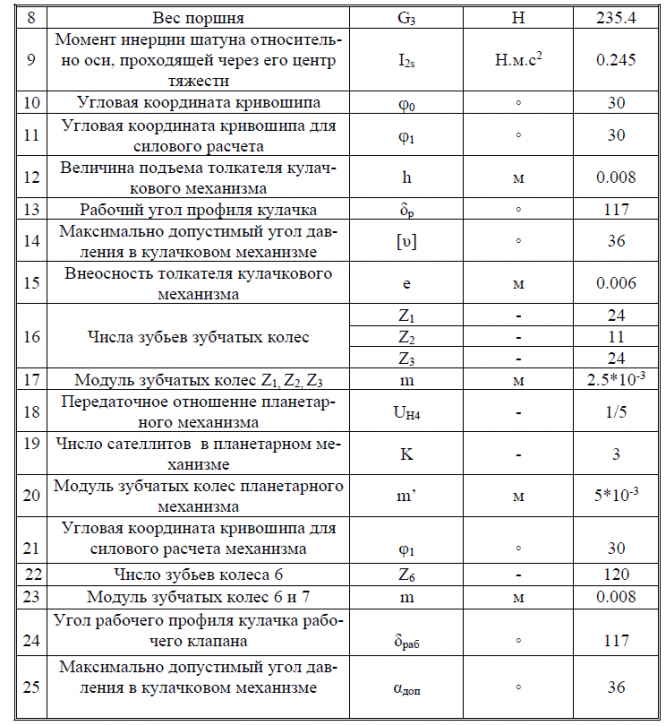 При проектировании и исследовании механизмов двигателя пользоваться исходными данными (см. ниже).